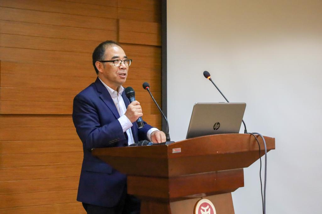 陈雄志先生点评总结。他鼓励学生们多思考产品“如何走出去”,也要注重方法论的指导,强调逻辑思维的重要性。他提到了六个要点:产品选择中要有家国情怀;要有明确的目标;要把握好市场及客户的关注重点:要明确如何介绍产品;要因地制宜;要制定合适的营销推广策略。他表示,近年来被重点关注的中美贸易战对于我们每个人来说都是一个巨大的机会,要学会抓住机会,实现“弯道超车”。