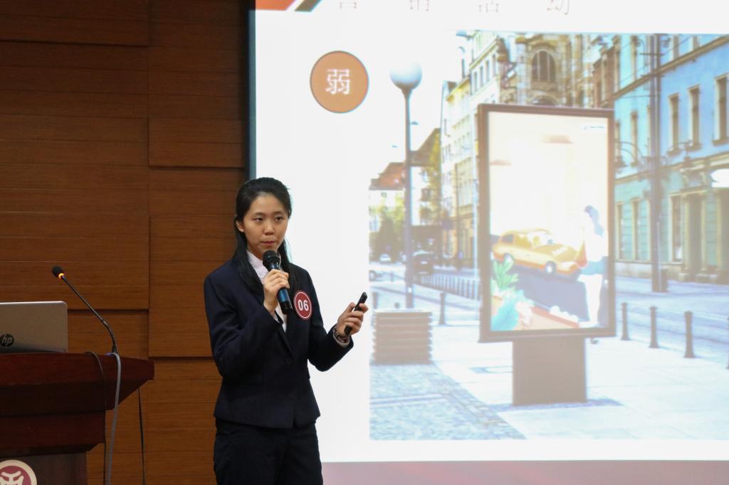 参赛的同学依次展示了作品。顾羽浩同学流利的双语解说一如他本人“稳定”、“优质”、“高效”的品质,在问答环节中沉着冷静地回答了评委的所有问题。李富蓉同学赛场表现大方自信、从容淡定,激情充沛地介绍了她的课题,从多种方面、用多种形式介绍了其推销的产品。参赛同学们的表现十分精彩,每一位都有自己独特的亮点,可圈可点。