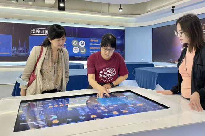 在永利官网人员陪同下,乐卓博大学代表参观了大数据与人工智能实验室、金融综合虚拟仿真实训室、桃花岛电商孵化中心、动漫游戏产业学院及健康医学院,深入了解了学校的教学设施与产教融合实习实践平台。