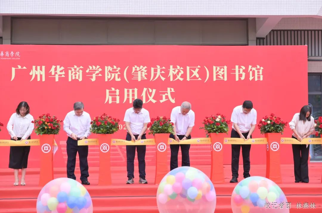 随后,校长胡军,副校长范忠宝、焦方太、余家军、许娜,华商科教集团副总裁刘文琦共同为图书馆剪彩,标志着肇庆校区图书馆正式启用。这不仅是校园硬件设施的迭代升级,为即将到来的二十周年校庆献上的一份厚礼,更是学校深度赋能教学科研、推进学校内涵式发展的精准响应。