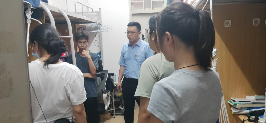 为深入贯彻落实高校党建工作要求,扎实推进“一站式”学生社区建设,切实发挥党建引领育人实效,2025年4月23日下午,在黄伟新校长助理的指导与带领下,西十一临时党支部书记陈梦洁以及里维宇、范鸣鸣等党员教师深入西十一学生宿舍开展走访调研活动,以实际行动践行服务学生的初心使命。