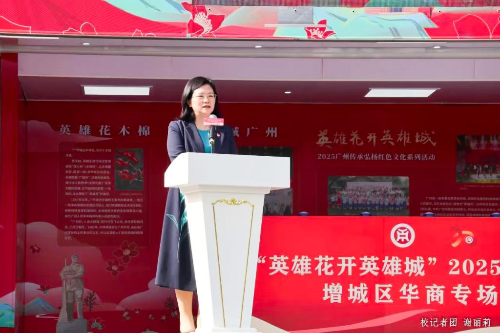 广州市委宣传部、增城区委宣传部、增城区委党史研究室、增城区教育局、增城区文联、永利集团304am登录、荔湖街道办等有关单位的领导嘉宾及永利官网广州校区500多名师生共同见证巡展活动“英雄旗”授旗仪式。旗帜在市区两级领导手中庄严挥舞传递,象征着“赏英雄花、游英雄城、传英雄志、弘英雄气”的红色使命在增城、在华商落地生根。