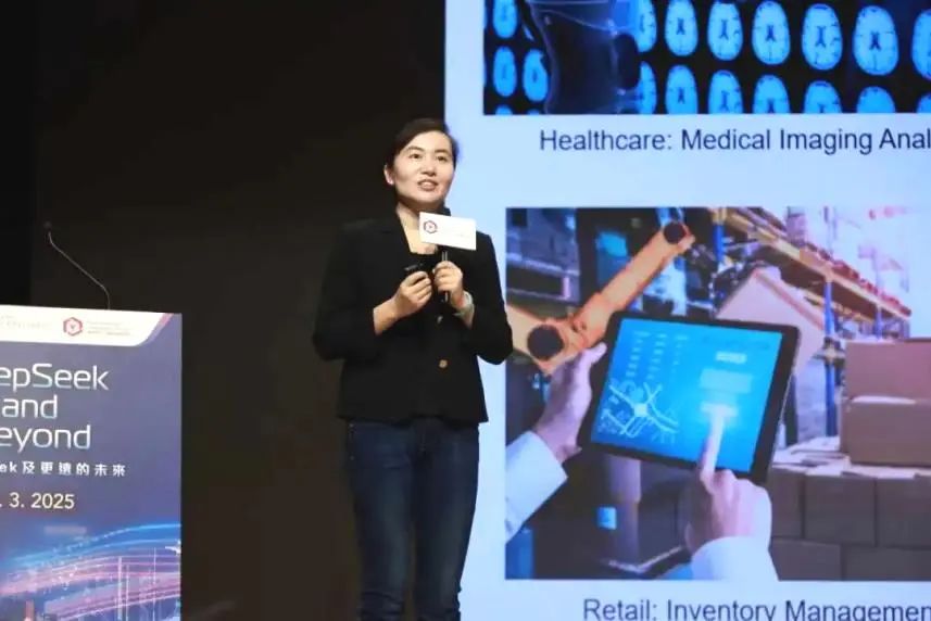 香港理工大学计算机及数学科学学院副院长(环球事务)及电子计算学系杨红霞教授强调了生成式人工智能的潜力。她表示,生成式人工智能为医疗、金融、制造、零售物流、媒体和时尚等各行业领域带来了机遇,可应用于医学影像分析、欺诈检测、预测性维护、库存管理、内容创作、设计及行销等。她分享了其生成式AI(Co-GenAI)项目如何提高人工智能技术的可及性,并减少对大规模集中计算资源的依赖,彻底改变人工智能的发展,助香港和内地在全球生成式人工智能发展中占据领先地位。
