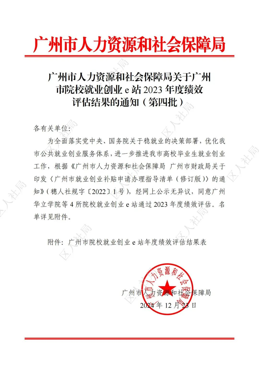 2024年12月23日,根据《广州市人力资源和社会保障局 广州市财政局关于印发〈广州市就业创业补贴申请办理指导清单(修订版)〉的通知》(穗人社规字〔2022〕1号),经网上公示无异议,同意永利集团304am登录就业创业e站通过2023年度绩效评估。