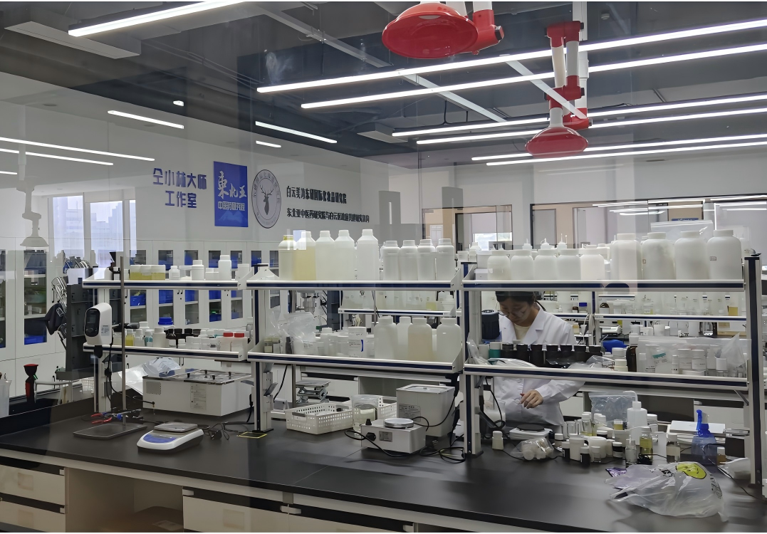 当天下午,调研团队实地考察了白云美湾科技公司最新研究成果展、高校协同创新研究院实验室、人体功效测试评价实验室及精密仪器研发中心等核心平台,重点了解了斑马鱼功效评价、微检技术等化妆品研发关键环节,并参观了包装设计展厅及娇联集团生产线,直观感受产业技术创新与成果转化全流程。白云美湾相关负责人现场演示了智能检测设备应用,介绍白云美湾化妆品产业以集群化、数智化转型为特色——2024年集群内有化妆品生产企业约1253家,化妆品工业产值加商业销售额合计超360亿元,服务近400家企业,推动6家龙头企业开展数字化转型,完成13个企业产线改造项目。