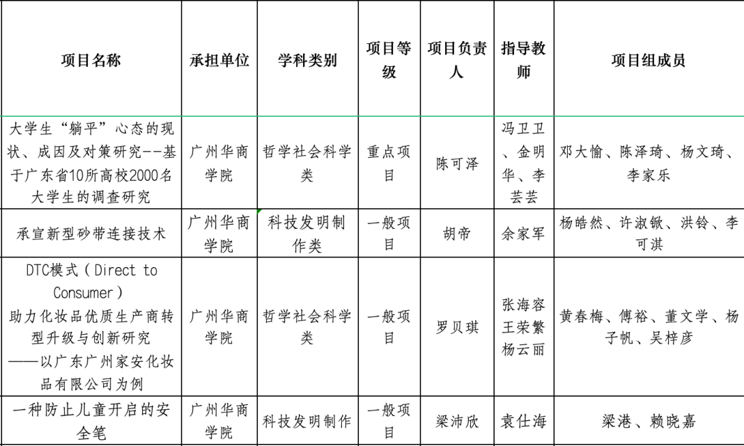 由团省委、省财政厅联合设立的2023年广东省科技创新战略专项资金(大学生“攀登计划”科技创新培育),永利集团304am登录7个项目获得立项资助,其中重点项目1项、一般项目6项,共获得省财政专项资助12万元。目前,被抽中的四个项均已顺利完成校级中期检查。其中《大学生“躺平”心态的现状、成因及对策研究——基于广东省10所高校2000名大学生的调查研究》也获得第十七届“挑战杯”广东大学生课外学术科技作品竞赛省赛三等奖。《承宣新型砂带连接技术》获第十四届中国大学生服务外包创新创业大赛全国三等奖。