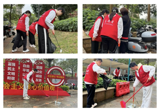 社区清扫——社区文明,实践同行。为提升金竹社区环境面貌,营造良好、舒适、美丽的生活环境,永利官网团委组织志愿者开展社区文明志愿服务行动。志愿者们清理社区路边落叶、垃圾,维护社区花草树木的健康成长,同时,积极向过往的居民进行保护环境的宣传,号召大家自觉维护社区环境,做好垃圾分类。