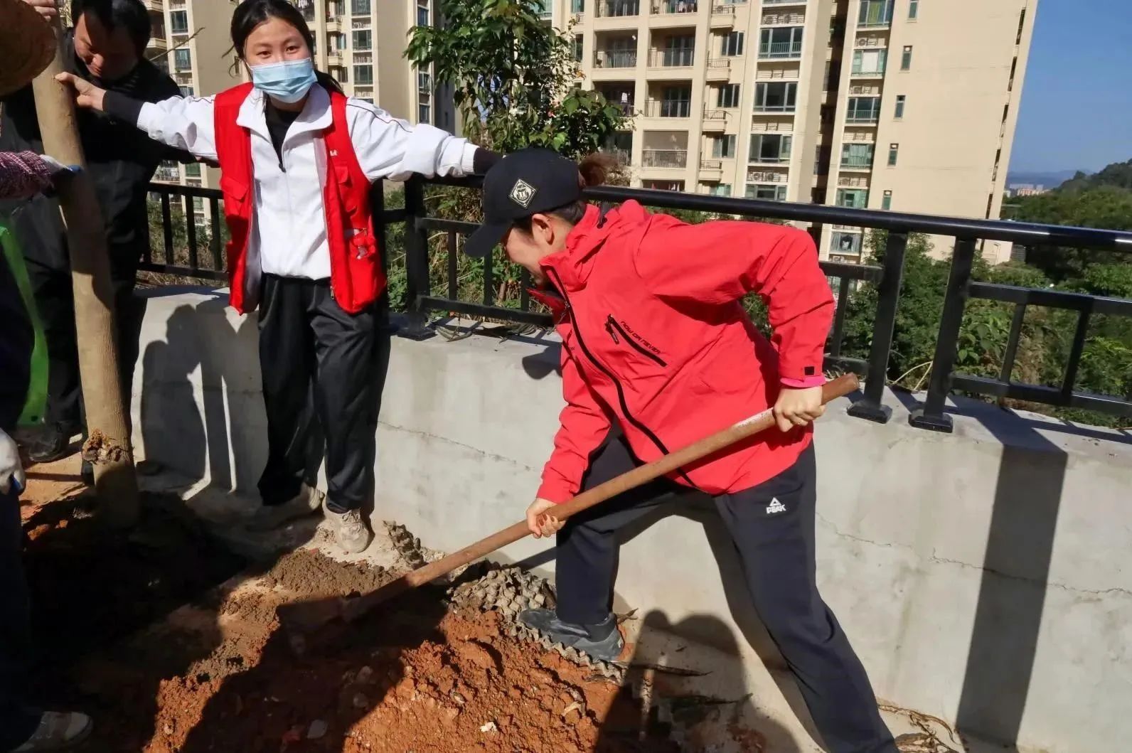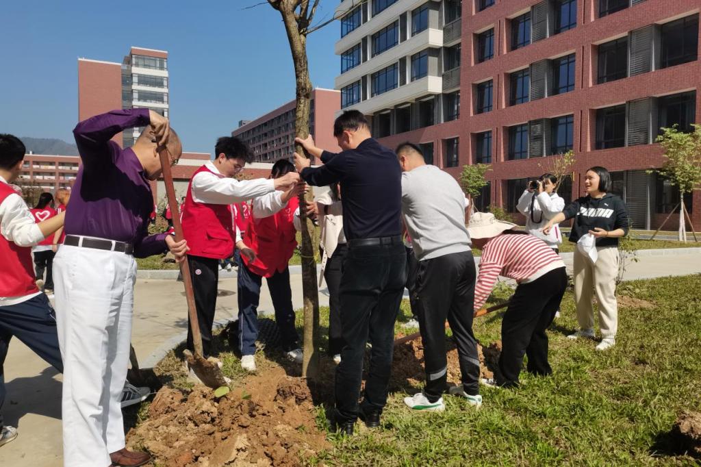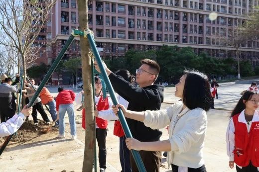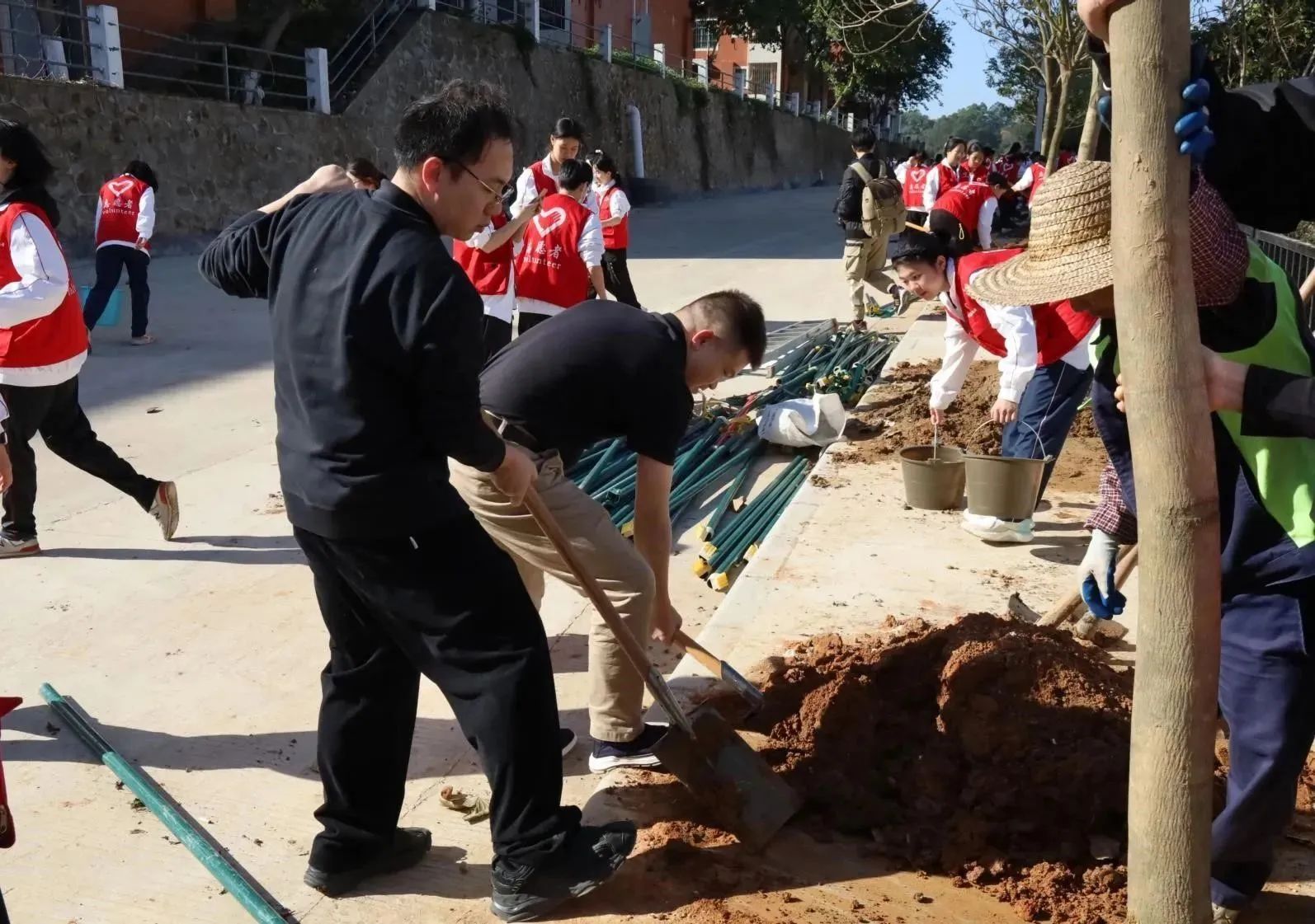 启动仪式后,各院校分别开展植树节活动。为引领华商青年在实践中践行绿色发展理念,助力绿美广东生态建设,永利集团304am登录“绿美广东 青年先行”植树护绿活动在双校区同步进行。学校党委书记陈玉欢、副校长王卫平、校长助理黄伟新、肇庆校区党委书记苏宁、学校党委委员、各二级学院党团组织负责人、学工主任、学生会指导老师与志愿者、绿化工人一道,为华商校园再添新绿。