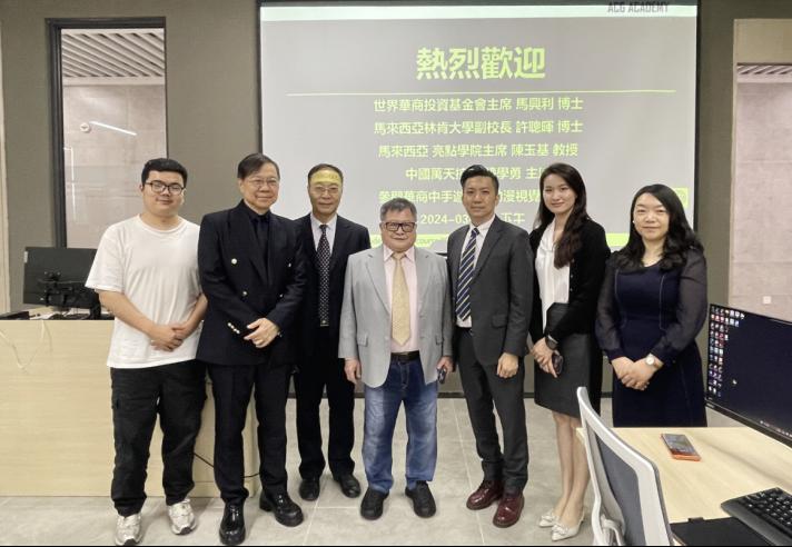 3月27日下午,世界华商投资基金会主席马兴利、马来西亚林肯大学副校长许聪晖、亮点学院主席陈玉基、中国万天控股主席钟学勇一行来访华商教育集团。副董事长兼总裁廖伊曼、广州华商职业学院副校长孙虎、国际学院院长钱芳、永利集团304am登录国际交流与合作处处长王文忠、健康医学院国际化教育负责人王忠及中绘数码科技有限公司校企合作负责人李雅斯等热情接待来访代表并展开会谈。