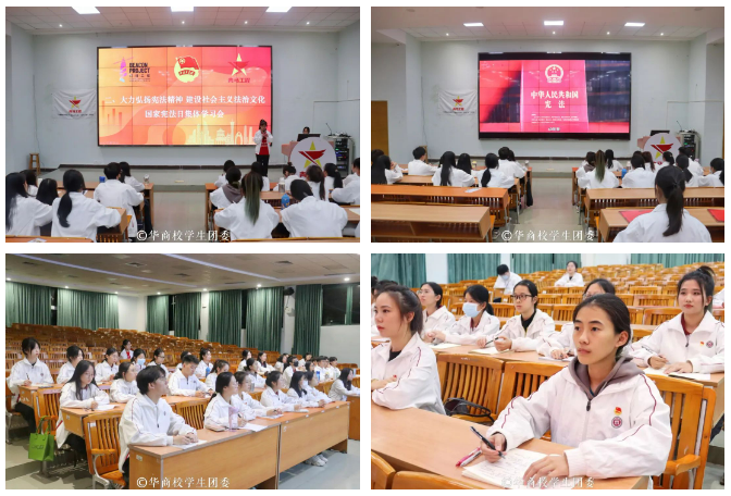 ——青马班集体学习会。校团委组织第十二期青马班学员在广州校区励志楼C408、肇庆校区8号楼108开展宪法专题分享会。学员们就我国宪法的基本精神和特征、设立国家宪法日的目的和意义、新时代如何坚定宪法自信弘扬宪法精神等内容进行分享和交流,在学习中深刻领悟习近平法治思想,维护宪法权威,增强法治观念,凝聚起奋进新征程的强大法治力量。