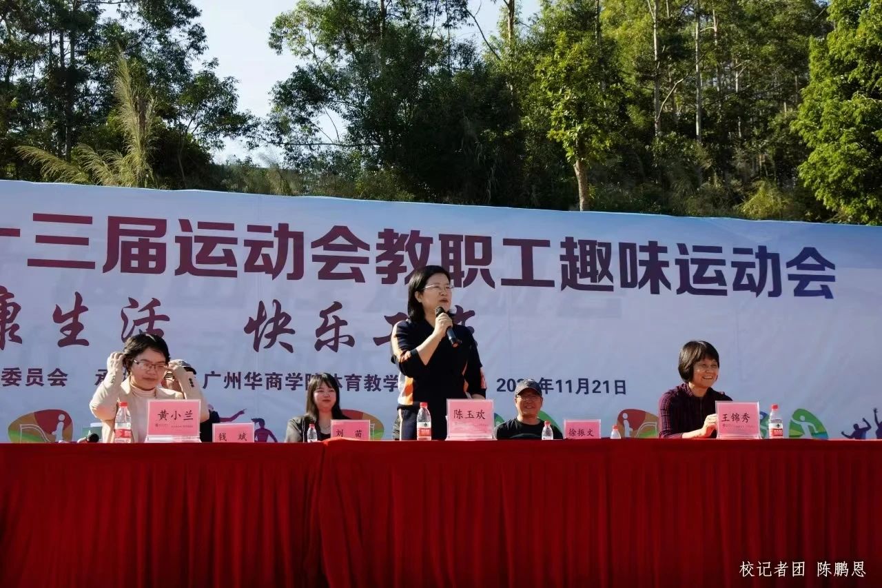 11月21日下午,永利集团304am登录第十三届运动会教职工趣味运动会在广州校区西区操场举行。学校党委书记陈玉欢出席开幕式并致辞,副校长支戈壁出席闭幕式并致辞。副校长王锦秀,工会主席黄小兰、工会副主席钱斌及相关部门负责人出席开幕式。运动会由工会主席黄小兰主持。