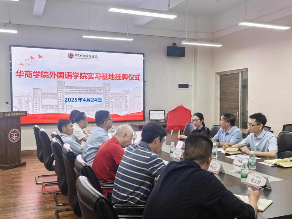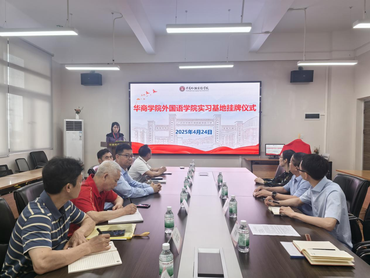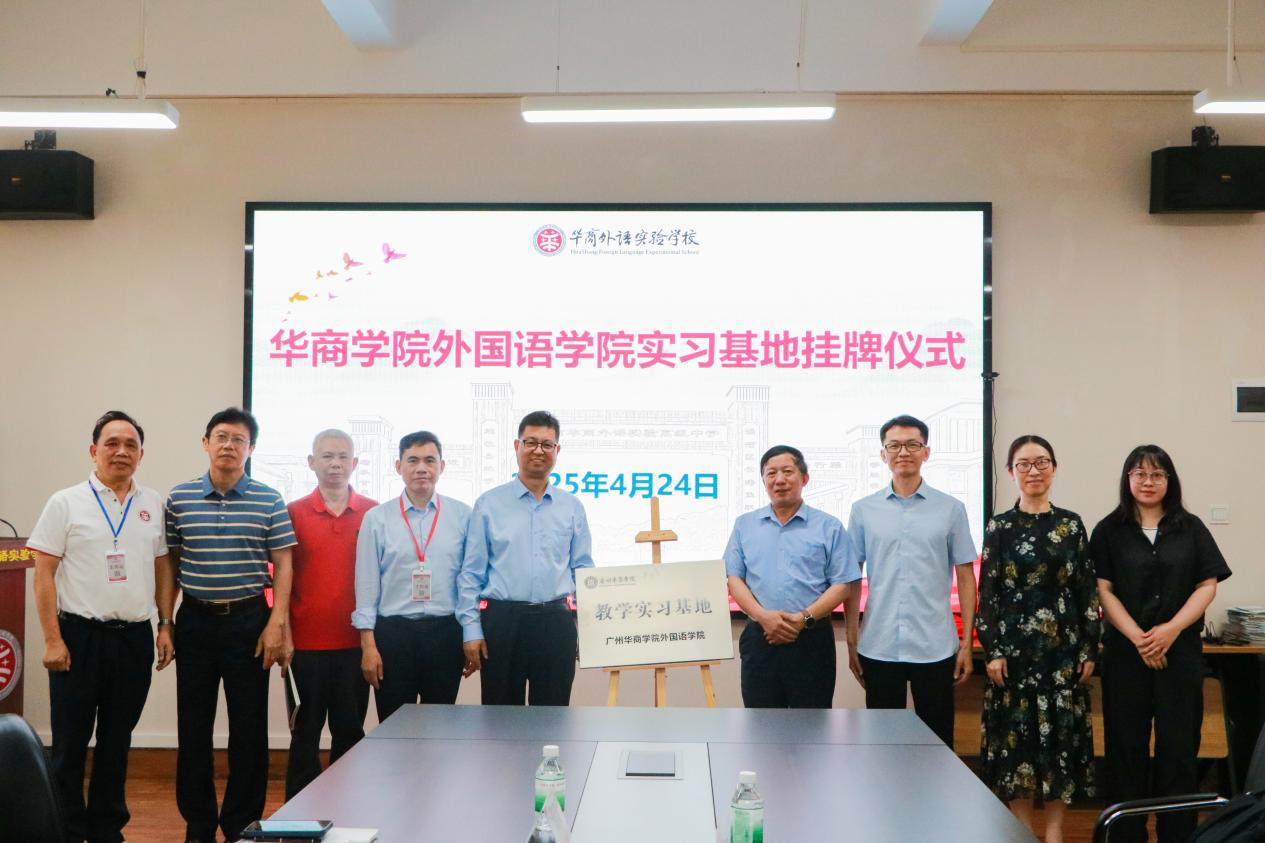 2025年4月24日下午,永利集团304am登录外国语学院一行前往广州市华商外语实验学校,举行共建实习基地挂牌仪式。出席此次活动的有华商外语实验学校总校校长赵秉乾、副校长唐双同、付红根、曹建忠、卢岳飞,学校办公室主任俞立智、教学助理董小雪老师及教师代表;永利集团304am登录外国语学院院长肖坤学、副院长何顺发,以及肖霄老师、肖茜老师。