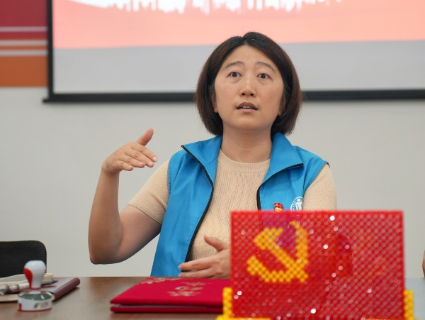 李丹站长发言。李丹站长首先向外国语学院一行的到来表示热烈欢迎,并详细介绍了社区工作规划,以围绕推进“村级服务提质工程”为重心,重点打造青少年成长支持平台,探索未来校社合作方向。一是开展“英语快乐学”课后辅导项目,针对辖区留守儿童提供个性化教学;二是共建“世界小公民”兴趣课堂,融入外语绘本阅读、跨文化体验等特色内容;三是组建大学生志愿服务队,参与社区文化节等公益活动。她特别感谢外国语学院对社区工作的大力支持,相信在双方的共同努力下,必将形成“资源共享、优势互补、双向服务、合作共赢”的良好局面。