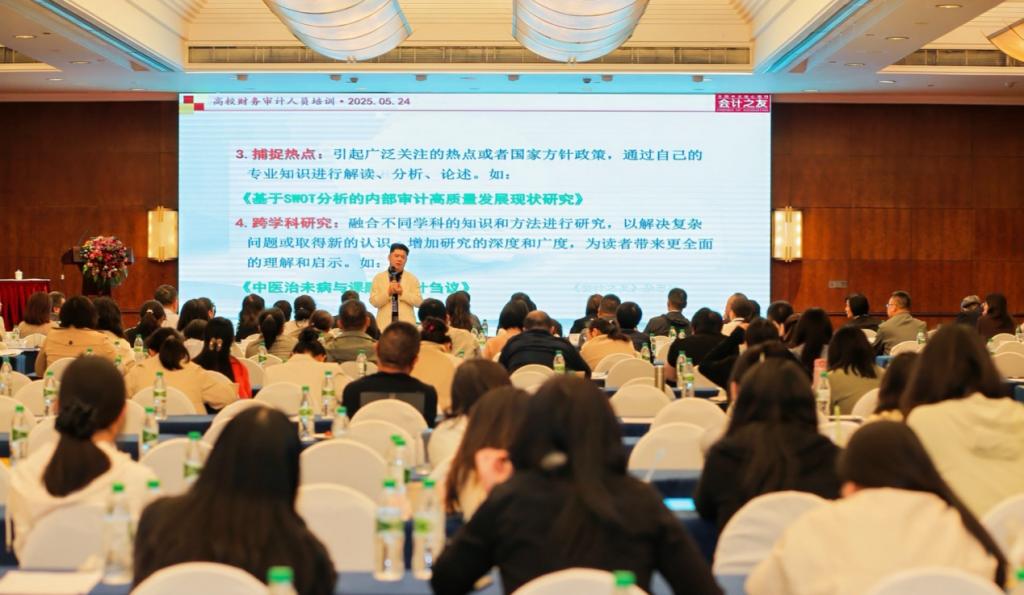 《会计之友》杂志社总编审笑雪压轴讲授“高校财务审计选题技巧”。他指出,学术研究应紧扣政策前,财务审计选题需兼顾理论深度与实务价值,为高校内控体系优化提供可落地的解决方案。
