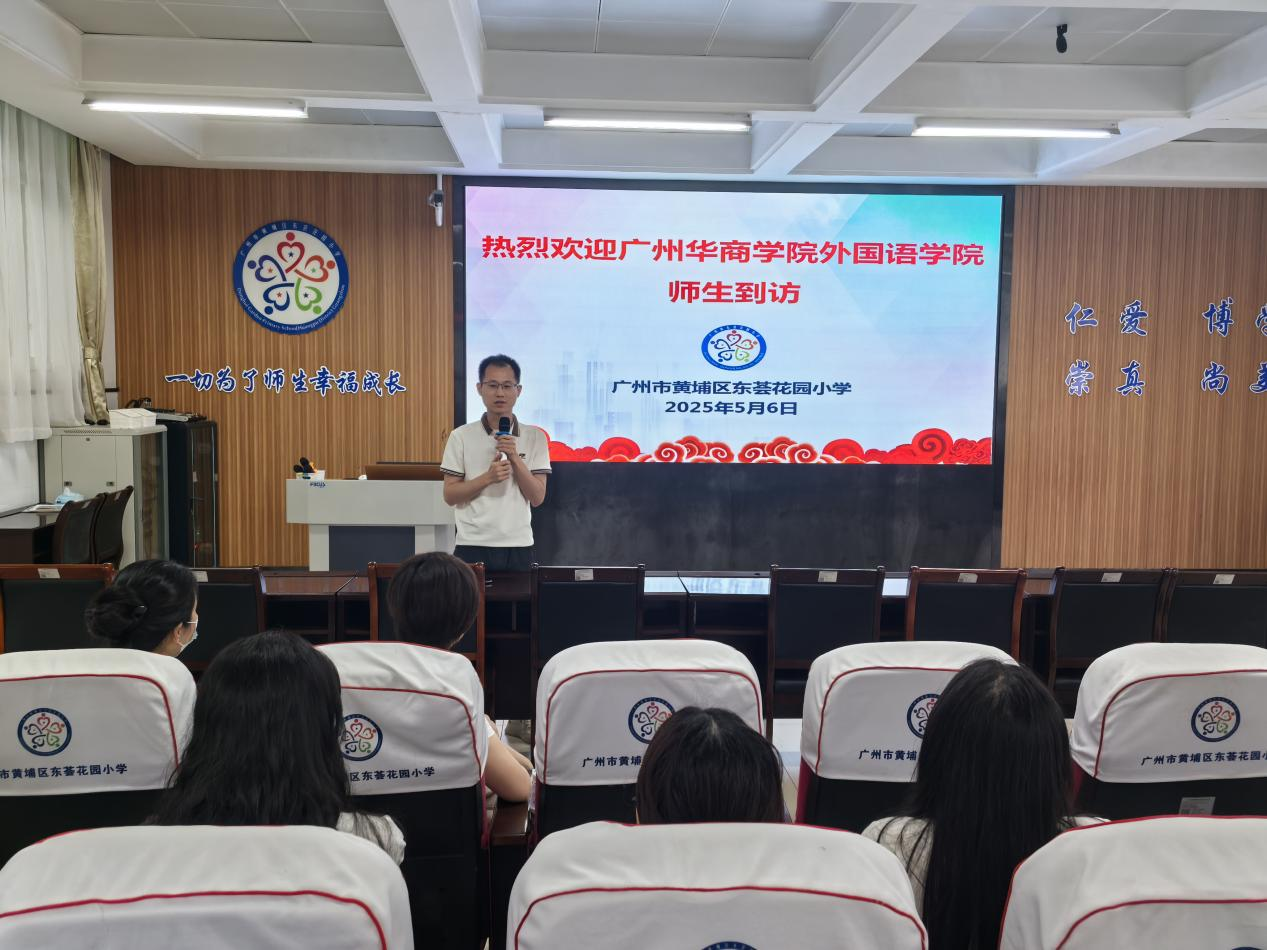 2025年5月6日下午,外国语学院一行前往广州市黄埔区东荟花园小学,开展认知实习活动。黄埔区东荟花园小学李晓宇校长、教导处魏巧璐副主任、沈晓泽老师以及黄埔区骨干教师、一级教师吴曦,与外国语学院副院长甄玲、赵曼翡老师、肖茜老师及实习学生共同参与。