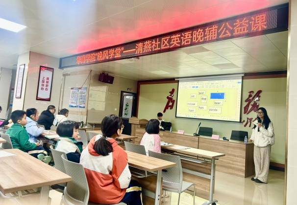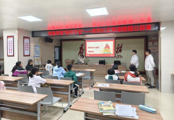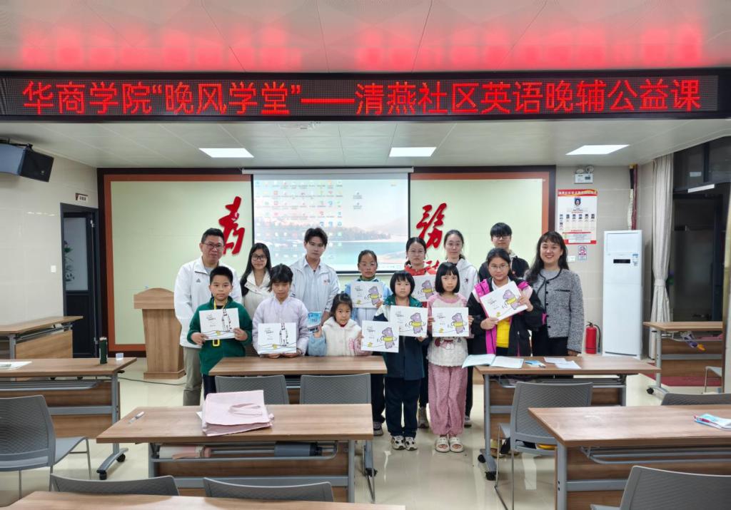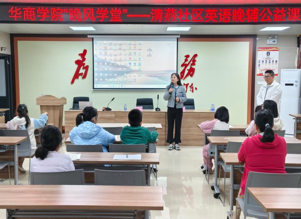 当晚,增城区清燕社区服务站灯火通明,由永利集团304am登录外国语学院发起的“晚风学堂——华商校社英语晚辅公益项目”首场活动正式启动。清燕社区居委会书记邓镜波同志、外国语学院项目负责人郭宇洁老师及志愿者们共同参与,为社区青少年带来了一场别开生面的英语学习体验。