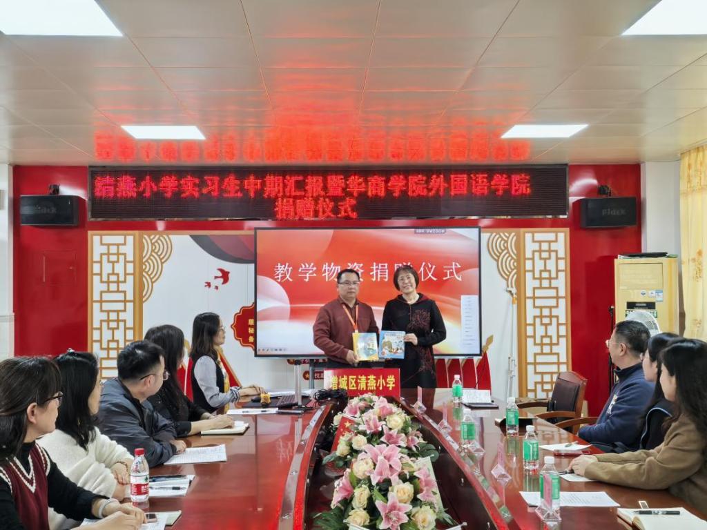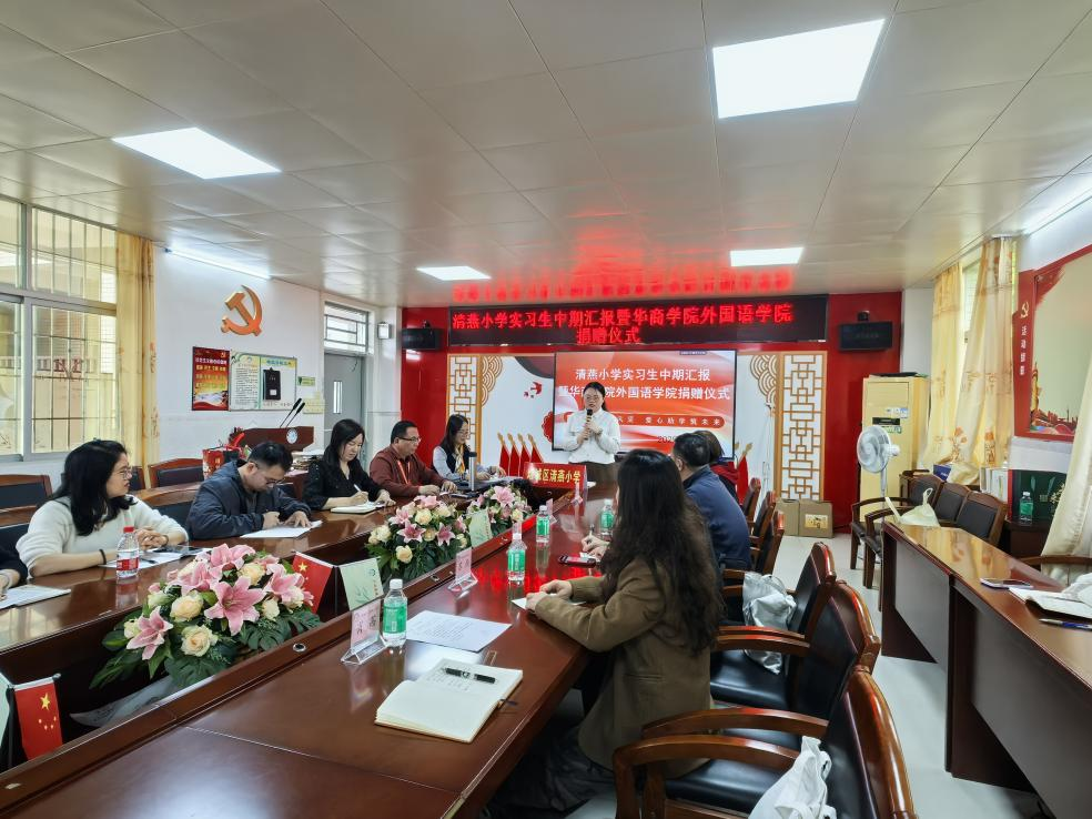 为感谢清燕小学对学生的悉心指导,外国语学院向清燕小学捐赠了物资。外国语学院代表表示,希望两校未来继续深化合作,为学生提供更多实习机会,助力学生成长。清燕小学对学院的捐赠表示衷心感谢,表示会充分利用这些资源,让学生受益。