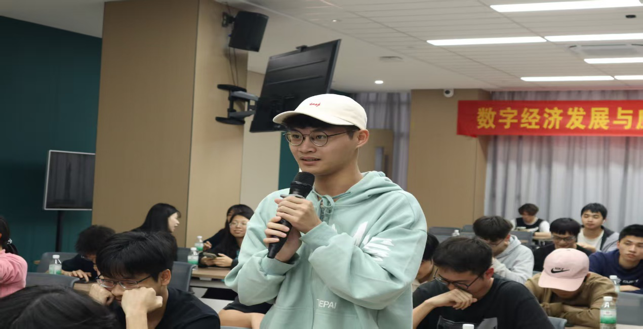 汤教授的主题演讲结束后,学生们紧抓与教授交流机会,争先恐后举手提问。有学生提问,随着数字经济的发展,传统的商业模式面临着哪些挑战和机遇,企业应该如何进行商业模式创新以适应新的市场环境;也有学生问到在制造业、农业、服务业等不同行业中,数字经济的应用呈现出哪些新的趋势和特点。