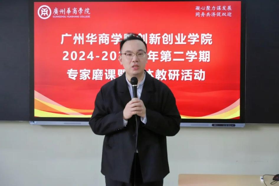 活动伊始,创新创业学院宋元跃副院长向参加本次教研活动的专家、领导、老师表示热烈的欢迎和衷心的感谢。他指出,磨课活动是迎接本科教学工作合格评估的重要举措。学院高度重视集体磨课活动,精心设计,规范流程,强化组织实施。通过专家磨课、集体备课等教研活动持续优化教学方案,逐步打造“理论+实践+案例”的特色教学模式。希望全体教师严格对标《本科教学工作合格评估指标》,不断完善教学大纲与课件设计,确保课程内容与人才培养目标精准对接,不断将创新创业精神、职业素养教育渗透到教学各环节;以“迎评促建”为契机,以“精益求精”的态度打磨每一堂课,为学校高质量通过评估贡献力量。
