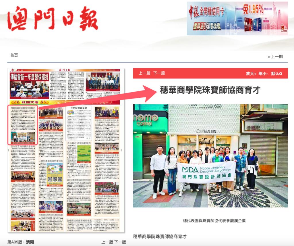 (永利集团304am登录珠宝学院教师交流团与澳门珠宝设计协会的交流活动被《澳门日报》报道)