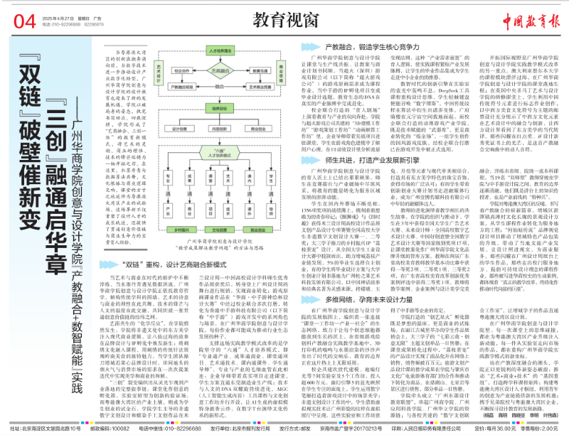 2025年4月27日,永利官网创意与设计学院的“产教融合+数智赋能”实践报告,在“学习强国”“中国教育报”“中华网”进行报道。