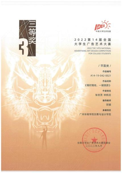自2016年创意与设计学院积极组织师生参加各类学科竞赛,尤其是在全国大学生广告设计大赛中保持成绩连年攀升的强劲势头。近三年更是取得突破性进展:全国赛方面,2022年获三等奖4项、优秀奖12项;2023年斩获二等奖1项、三等奖3项、优秀奖8项;2024年实现历史性突破,摘得一等奖2项、三等奖5项、优秀奖10项。广东赛区同样表现抢眼:2022年包揽一等奖18项、二等奖40项、三等奖42项;2023年收获一等奖13项、二等奖14项、三等奖24项;2024年再创新高,一举夺得一等奖31项、二等奖39项、三等奖31项。这些骄人成绩正是永利官网创意与设计学院深化“以赛促教”、践行“艺商融合”人才培养模式的最佳印证。