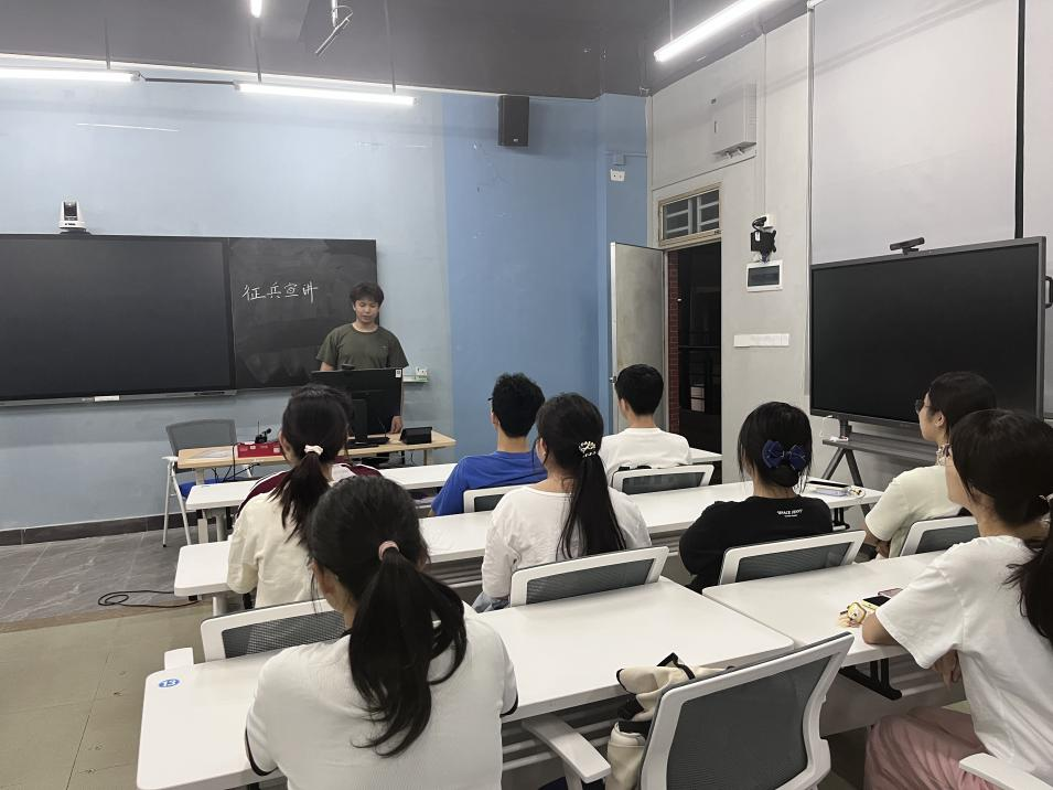为响应2025年征兵工作号召,切实推进征兵工作落实,永利集团304am登录教师教育学院积极开展校园征兵宣传活动,鼓励学生投身国防事业,为国家的安全和发展贡献力量。2025年4月24日晚上,教师教育学院组织退役大学生士兵于励志楼开展以“青春铸军魂,热血报祖国”为主题的征兵宣讲会,会议由教师教育学院征兵负责人张雅芬老师主持。