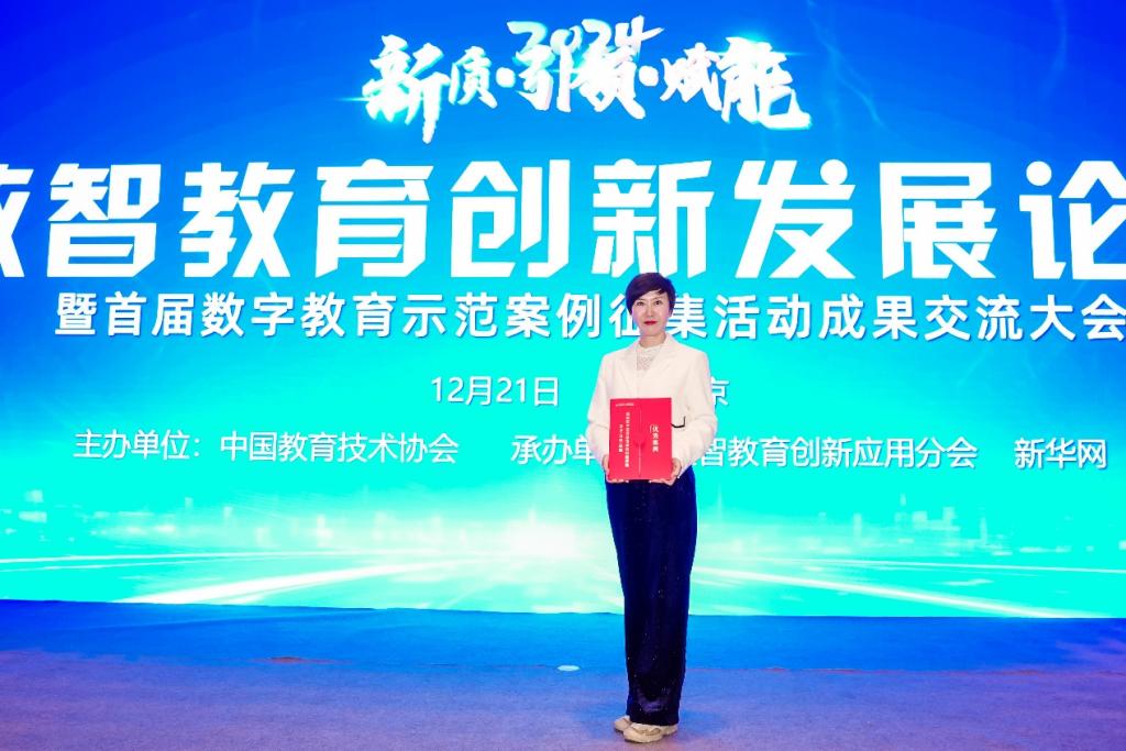 外国语学院刘阳副教授受邀出席此次盛会,并代表获奖团队领取由中国教育技术协会颁发的“首届数字教育优秀案例”奖项。获奖案例“大学英语视听说在线课程示范教学案例”是外国语学院与国家高等教育智慧教育平台、粤港澳大湾区高校在线开放课程联盟、超星学银在线等教育平台战略合作的成果,其针对大学英语视听说教学方式单一、对学生个性化需求关注不足,以及输入不足和输出困难等教学痛点难点,通过教、学、演、练、赛,以及BOPPPS教学方法,创新性地构建了AI助学+线上线下数字化教学模式。