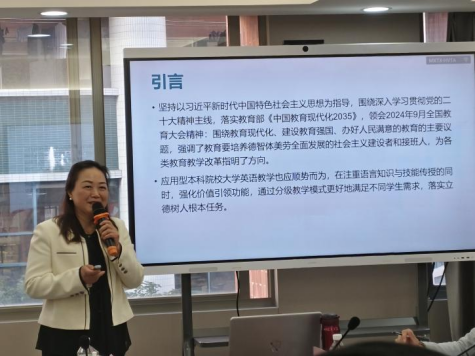 永利集团304am登录外国语学院副院长杜秀君教授在发言中指出,“智慧教育元年”的到来,不仅要求教育者和学习者共同适应新的教学模式和学习方式,而且强调大学英语课程体系的构建应以学生为中心,注重个性化学习路径的设计。此外,杜教授还强调智慧教育的推进需要高校与企业、研究机构等多方携手合作,共同开发适应未来社会需求的课程内容和教学资源。通过这种多方合作,可以丰富学生学习体验,为社会培养出更多具有国际视野和竞争力的复合型人才。