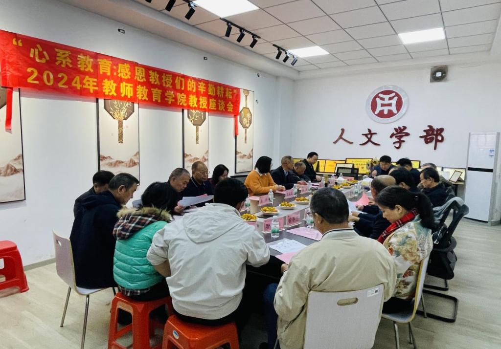 2024年12月31日下午,永利集团304am登录教师教育学院在厚德楼一楼人文学部A101会议室举办“心系教育:感恩教授们的辛勤耕耘”教授座谈会。永利集团304am登录党委书记陈玉欢教授,副校长范忠宝教授、吕峻闽教授、许娜副教授,以及学院各位领导、教授共同参与此次座谈会。会议由教师教育学院党委书记陈上仁教授主持。
