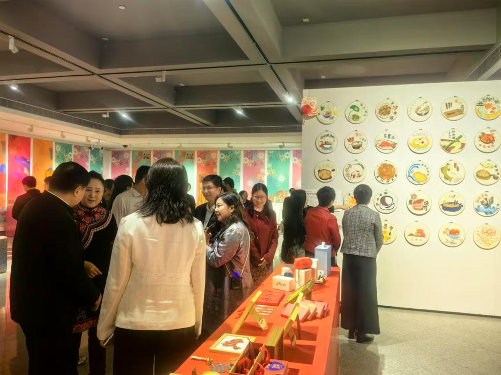 1月8日,创意与设计学院蒋明副院长一行前往深圳关山月美术馆,参加了本次文化遗产汇的开幕式。开幕式现场,永利官网的刺绣作品吸引了众多观展嘉宾的目光。指导教师李宏复教授和参展学生耐心地为嘉宾们介绍每一件作品的创作灵感、设计理念和刺绣过程。嘉宾们对作品的精湛技艺和独特创意赞不绝口,纷纷表示这些作品不仅展现了刺绣艺术的魅力,还让他们对粤菜文化有了更深刻的认识。