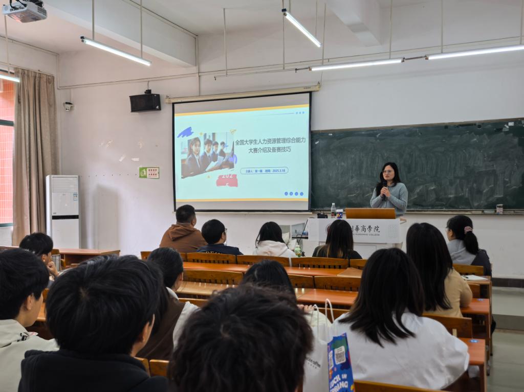 2025年3月18日下午,管理学院在励志楼C302成功举办了一场题为“全国人力资源管理综合能力大赛:实战技巧与赛前秘籍”的讲座。本次讲座旨在为即将参加第十届全国人力资源管理综合大赛的同学们提供专业的赛前指导和实战技巧,帮助他们更好地备战大赛。